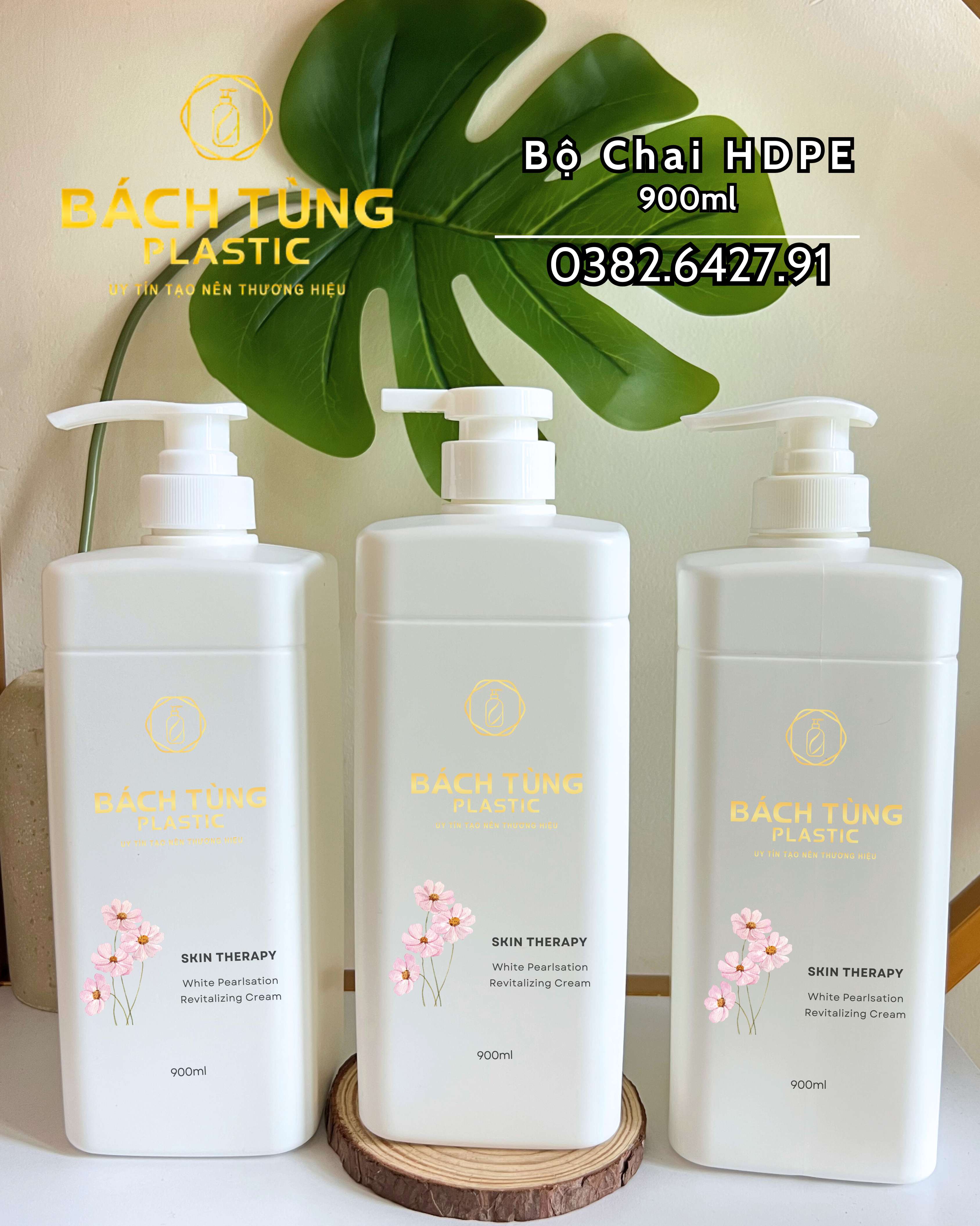Với kiểu dáng vuông khỏe khoắn, màu trắng sữa tinh tế, và vòi nhấn tiện lợi FI33, chai HDPE 900ml là lựa chọn hoàn hảo cho các thương hiệu muốn tạo hình ảnh hiện đại và chuyên nghiệp cho sản phẩm.