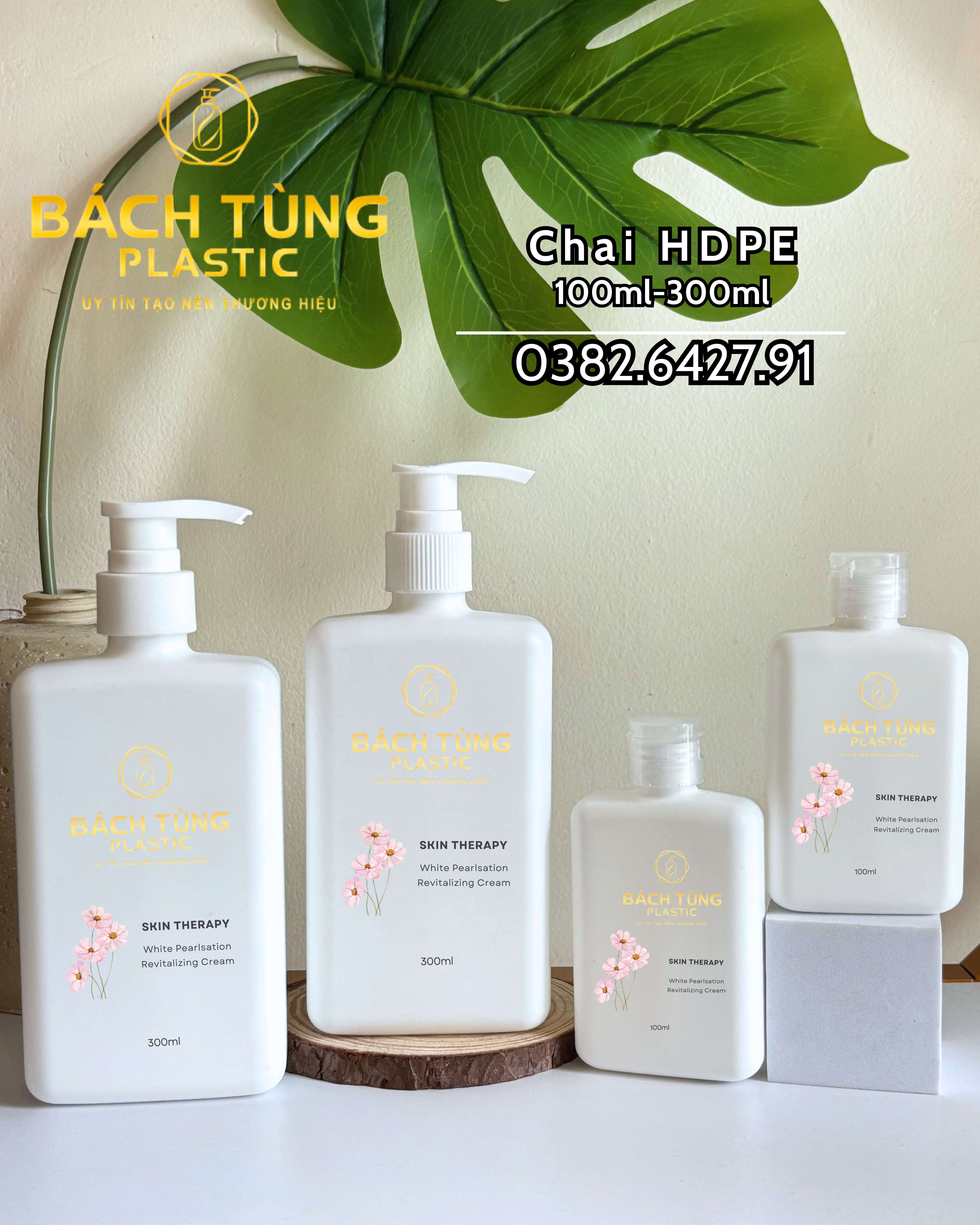 Bộ chai HDPE dáng vuông dung tích 100ml và 300ml được sản xuất từ nhựa HDPE nguyên sinh cao cấp, có độ dày và độ bền cao, an toàn cho cả mỹ phẩm và sản phẩm chăm sóc cá nhân.