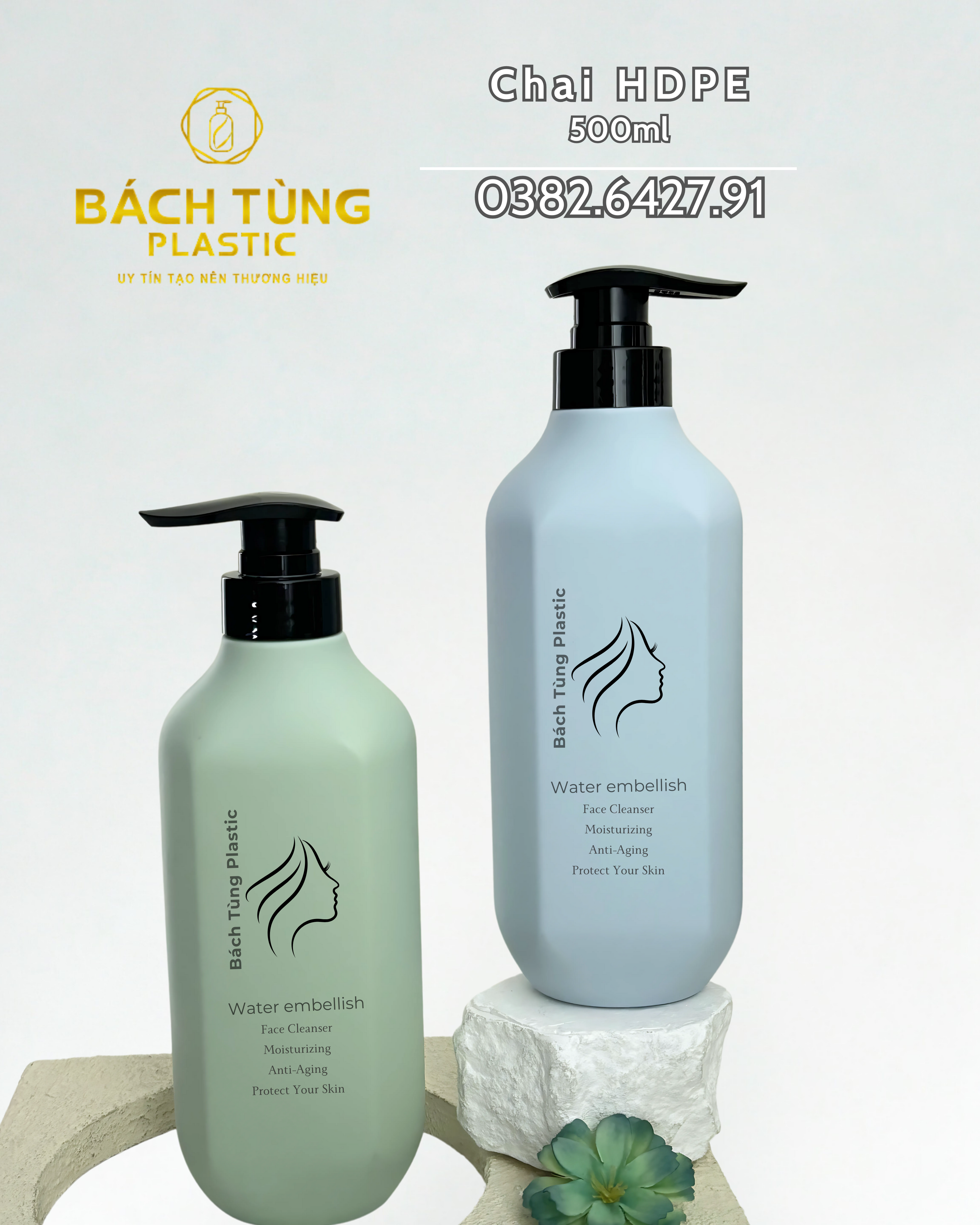 Chai HDPE với hai gam màu tươi mát: xanh mint nhẹ nhàng và xanh da trời trẻ trung, là lựa chọn hoàn hảo cho các sản phẩm mỹ phẩm, chăm sóc cá nhân và hóa mỹ phẩm. Chai được thiết kế dáng bầu mềm mại, hiện đại, kết hợp với đầu nhấn lá đen cổ FI33 giúp tạo điểm nhấn nổi bật và chuyên nghiệp cho bao bì sản phẩm.