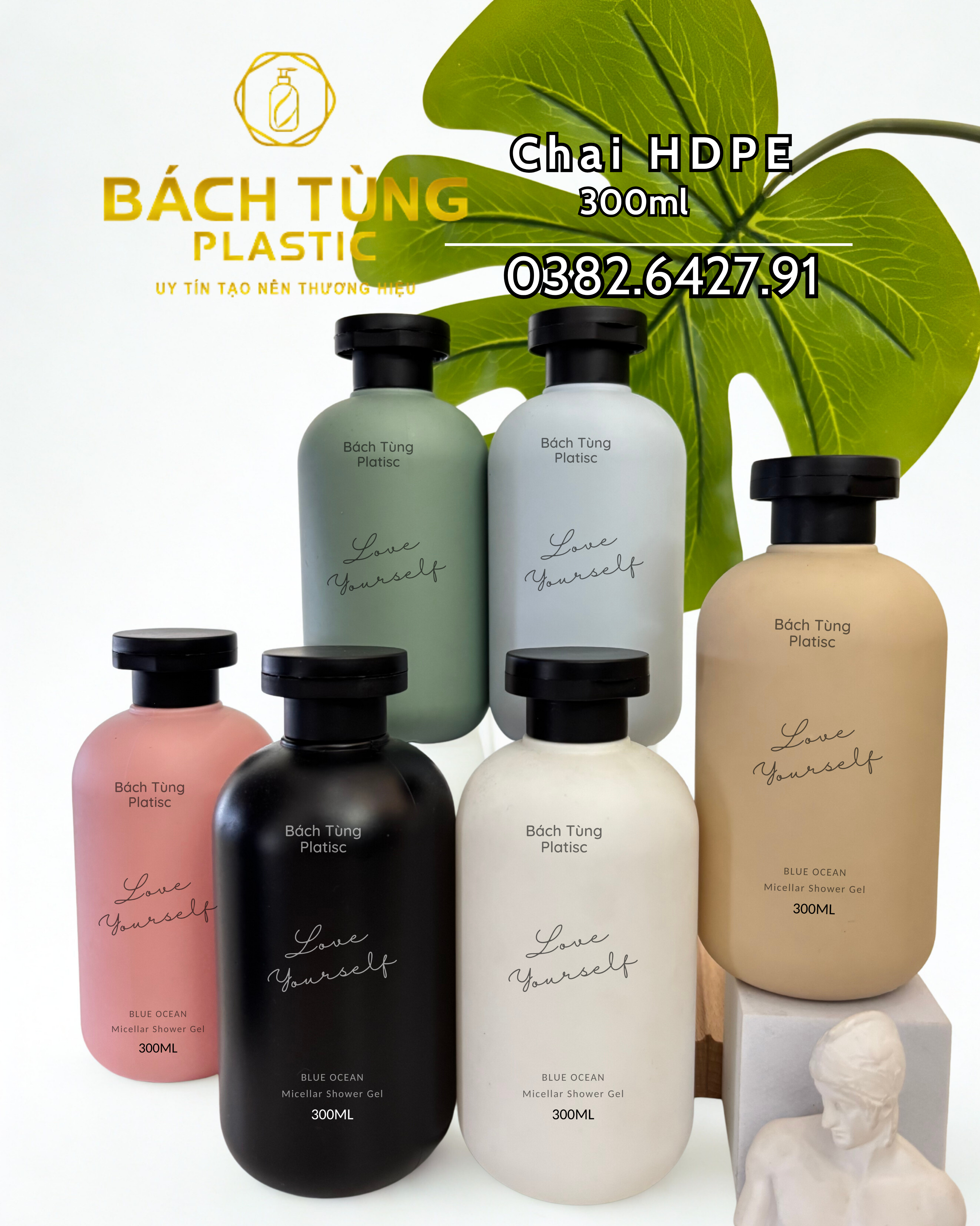 Chai nhựa HDPE 300ml với nhiều lựa chọn màu sắc hiện đại, kết hợp cổ FI24 màu đen sang trọng, mang đến vẻ chuyên nghiệp và thu hút cho sản phẩm. Thiết kế dáng tròn nhỏ gọn, dễ cầm nắm, phù hợp cho cả mỹ phẩm, chăm sóc cá nhân và sản phẩm vệ sinh.