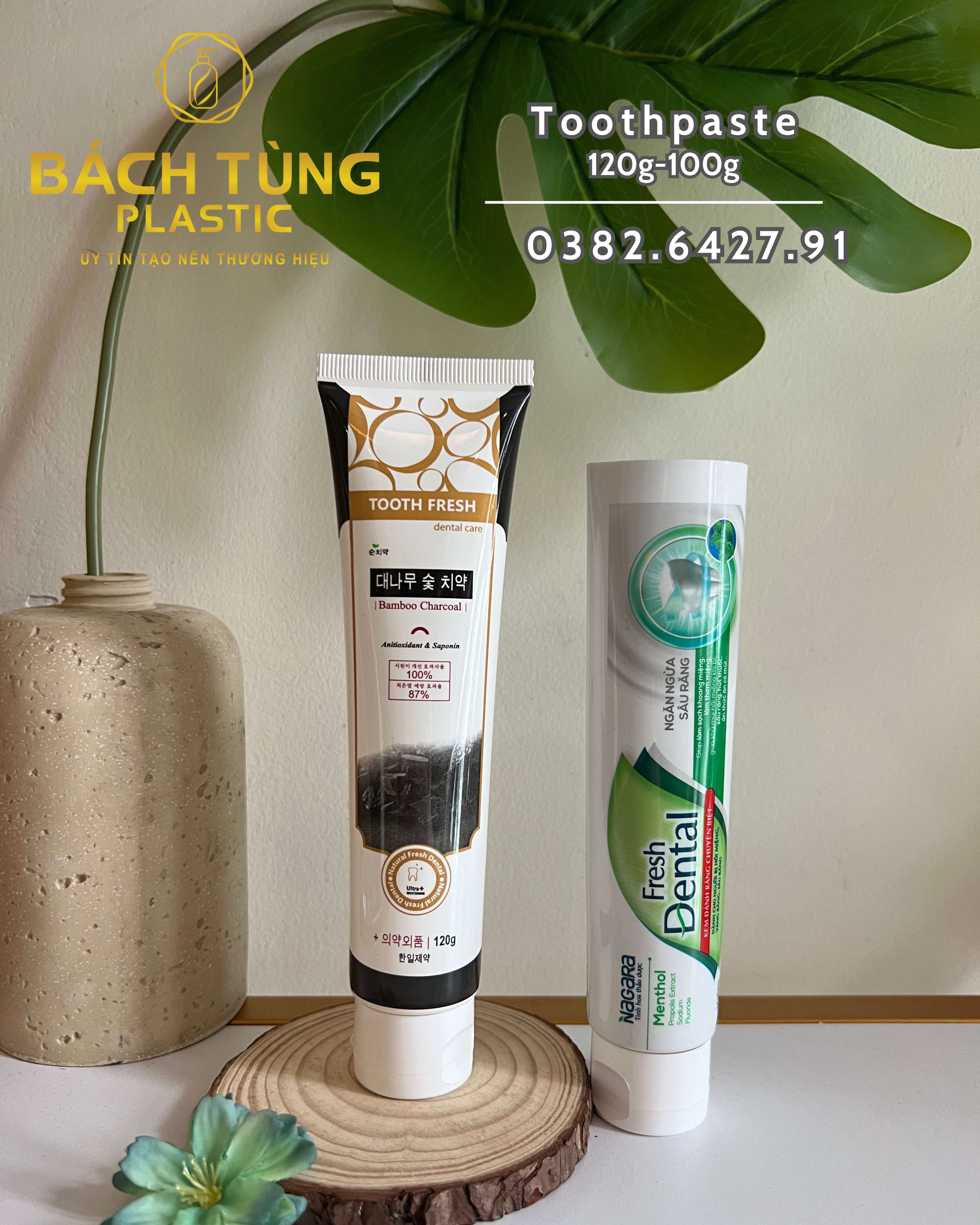Tuýp nhựa dung tích 100g và 120g được sản xuất từ nhựa cao cấp an toàn, đảm bảo chất lượng khi tiếp xúc trực tiếp với sản phẩm chăm sóc răng miệng. Thiết kế dáng trụ thuôn dài, thân tuýp mềm dẻo dễ bóp, kết hợp nắp vặn kín khít giúp bảo quản sản phẩm tốt hơn, chống rò rỉ hiệu quả.
