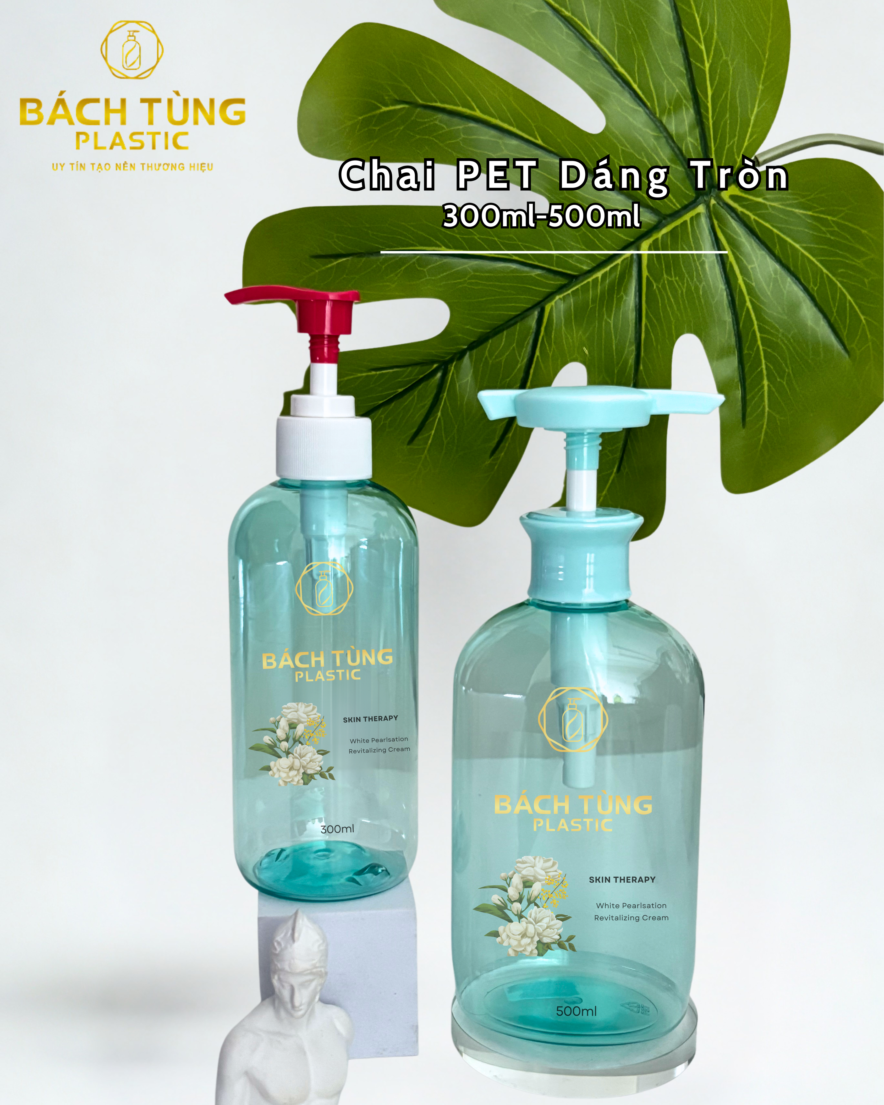 The PET round-shape bottle set in 300ml and 500ml sizes comes in a refreshing transparent blue color, delivering a clean, modern, and eye-catching look. With its classic round design, the bottles are practical while maintaining an elegant style, suitable for a wide range of cosmetic and personal care products.