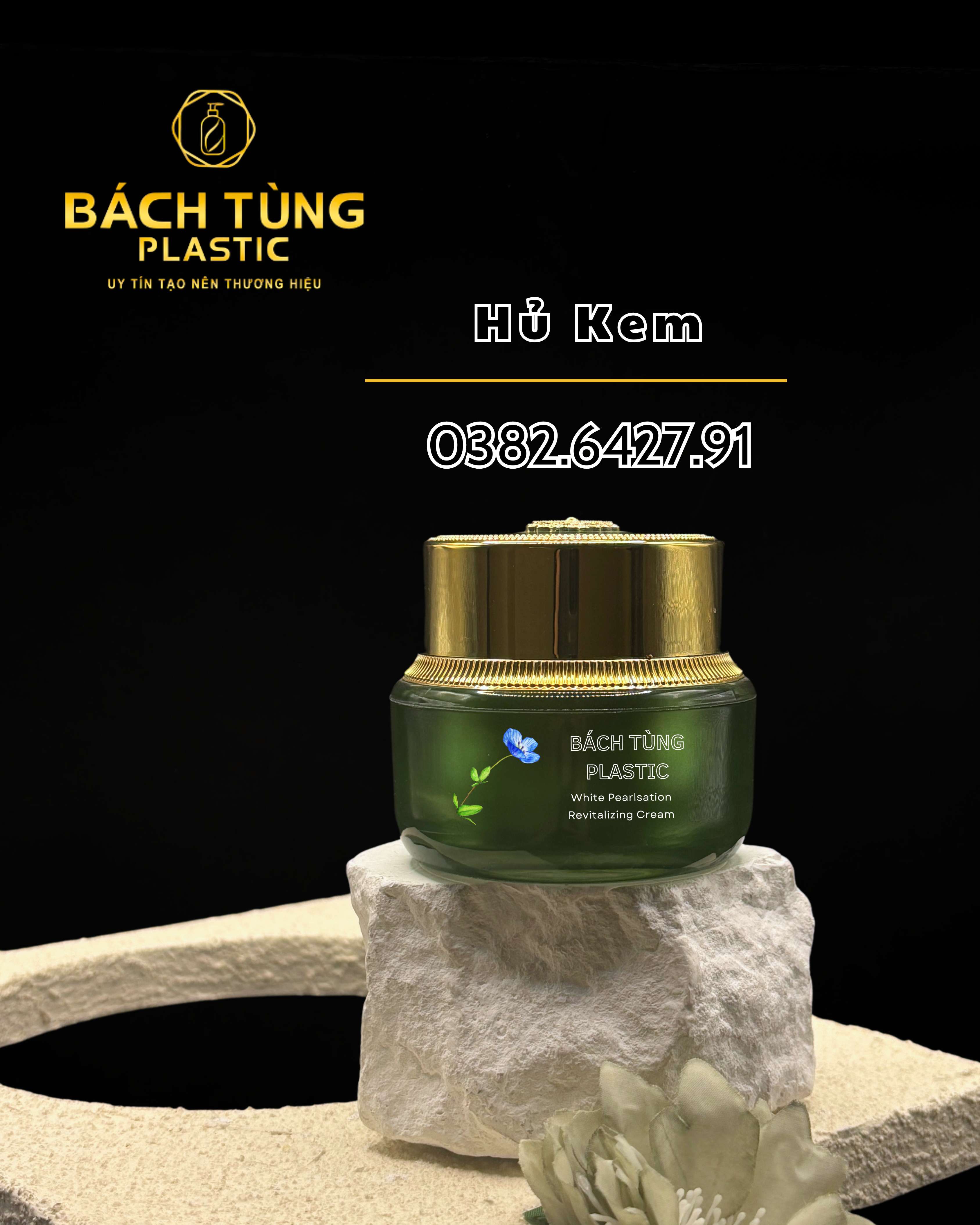 Premium glass cream jar with a luxurious green body and gold lid, designed to highlight your cosmetic products in style.